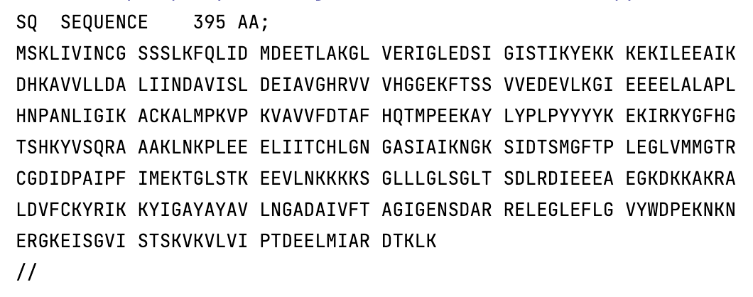 This result can be run through programs like Google’s AlphaFold to get the following prediction for the enzyme’s 3-dimensional shape. The enzyme pictured below is not known to exist, but was generated using AUG-Met’s platform.